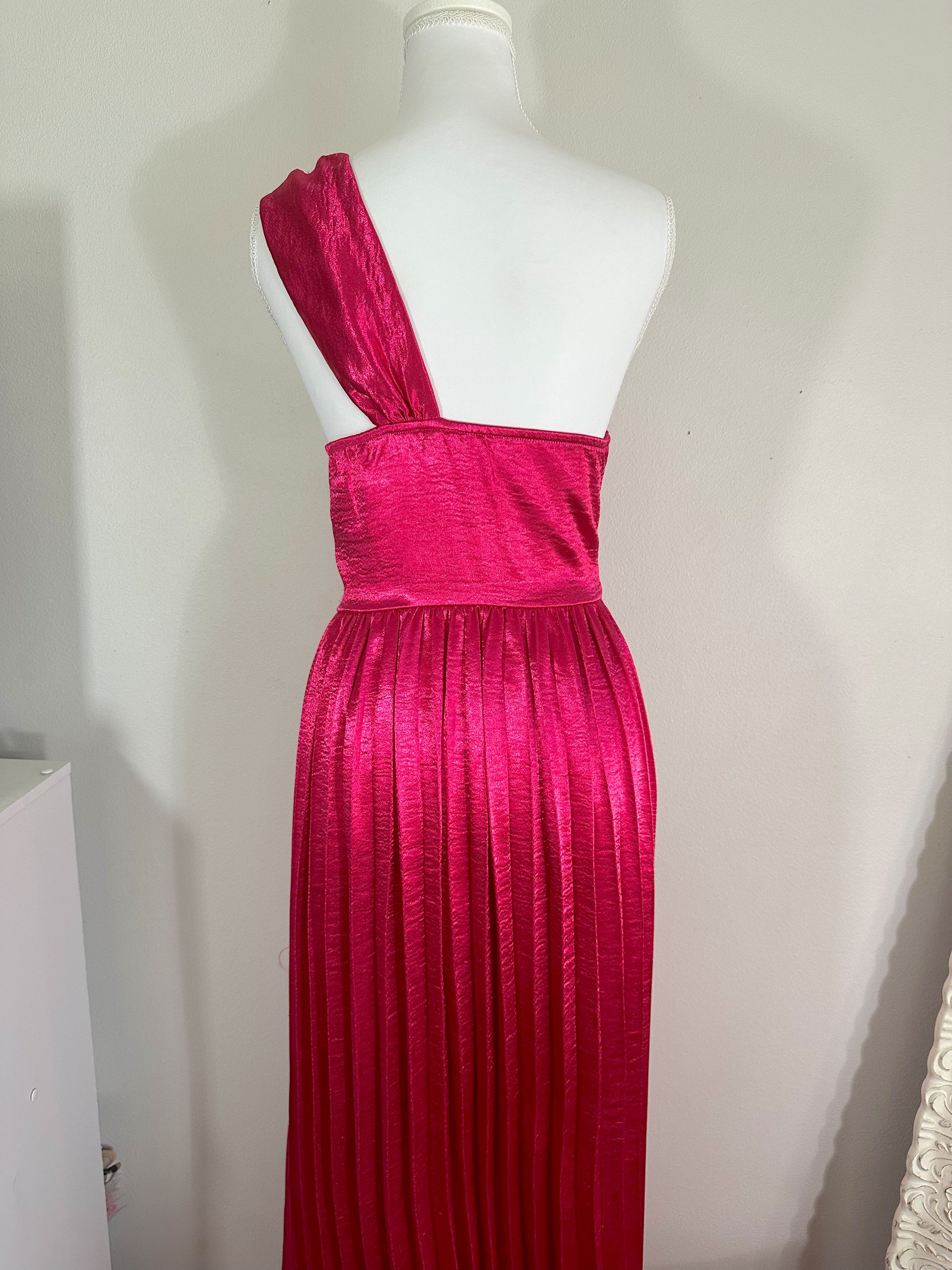 Pink Satin Midi Dress